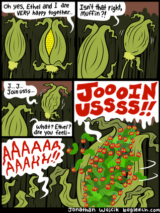 "Arrrrrgh! Robots is not born! Theys are made in the facterys of metal and death!"