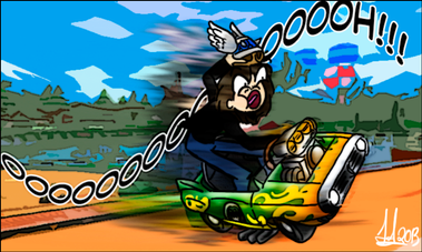 Lo que más me gusta son los colores del fondo y sobre la imagen, morado con flores y demás, que hacen que el dibujo quede com o un papel arrugado.