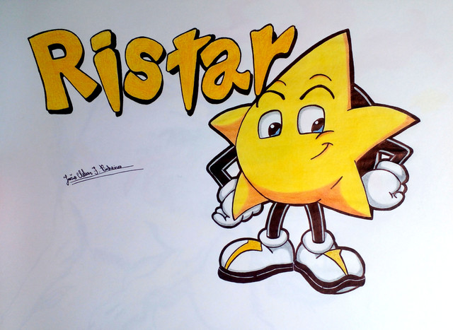 Ristar,un personaje clásico de Sega.Una especie de estrella fugáz que tuvo su propio videojuego en la consola Sega Genesis lanzado en el año 1995.