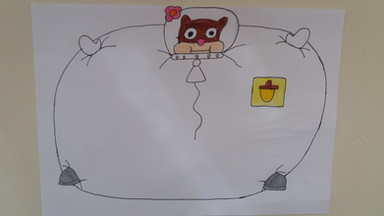 Request for:JoeyinsullyDrawing of Sandy Cheeks from Spongebob Squarepants,inflated like a air balloon using his thumb.