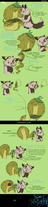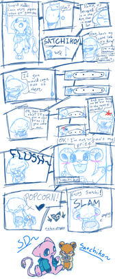 obviously lots of different emotions happen. shocked, annoyance, happiness, extreme happiness, spazzyness, and apparently some kind of girly KYAAAAAAA!!! SOOOO CUUUUUTTEE!!! ~wonder what that's about. i took out allot of the text as well as the really big and important panels. what are those panels about? you'll have to find out. :3