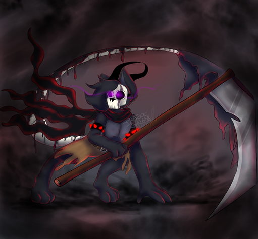 B-But if the scythe is so sharp, why isn't she sliced in half by the top of the scythe? D: