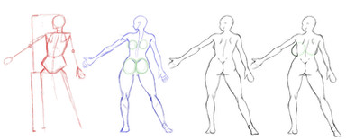 Here is an addition to my Construction Series (I guess its now official) highlighting the bakc view of the female figure.This follows some of the same guidelines used in "Construction... Redux" [link] and as you can see we have the return of the heart-shape, yet this time it is utilized to draw the butt. As I stated in the other work, the heart shape is used to place the butt on the figure and in this application the tip of the heart originates approx where the belly button would be, if it were the front view and can be drawn/tweaked for your purposes. Be they flat, round, big or saggy, the "heart-shaped hiney" is the way to go!
