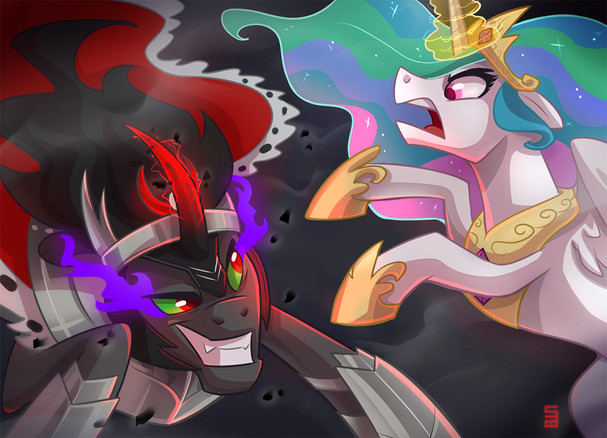 Honestly, I would if this weren't the umpteenth picture of Changelings being used as cannon fodder for art. I mean, really, there are LOADS of other dangerous creatures throughout the entirety of Equestria. Why treat a species that only appeared for 7 minutes maximum get the same treatment as oneΒ that killed your family, burned down your house, broke all of your limbs, punched you in the throat, and spat on your face all in 1 minute?