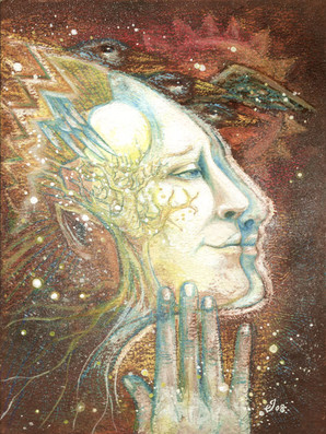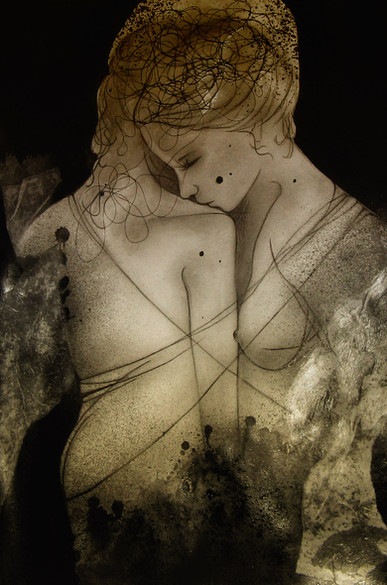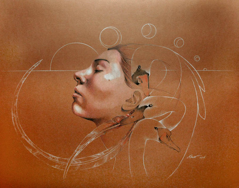 Acrylics, oil based pencil and watersoluble pencil on gessoed hardboard14 x 18