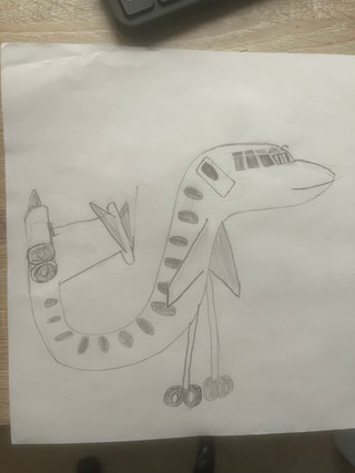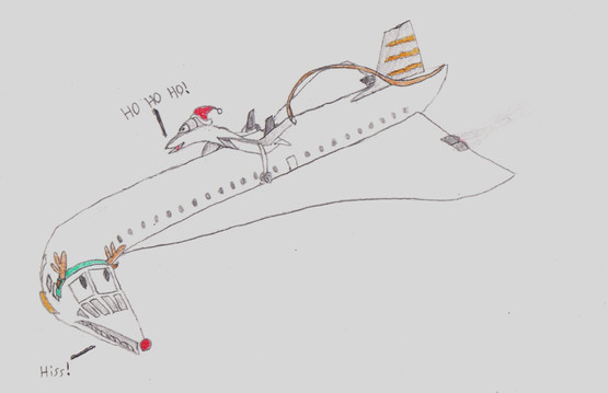 Everytime he sees lots of food infront of him, his jaw drops open, the tongue hangs out and his pupils dilate, resulting in that faceI added a tongue sheath. I did a little research on the anatomy of a snake's mouth, and decided to add that feature because a long thin tongue going all the way into the throat looks a little strange. It also further balances the "snake plane" scale. I did not add a "glottis" however since it looks too strange to be on a plane, even with the tongue sheath