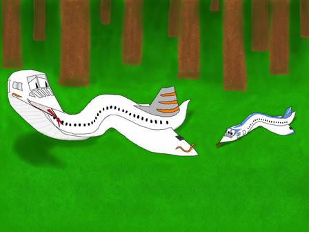 Sebascelisc: *screams and instantly shot away with his afterburners and hit a tree with the barrel still in his throat. He now lies on his back, eyes wide open in instinctive fear while still focusing on swallowing the barrel completely*