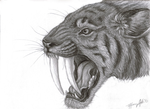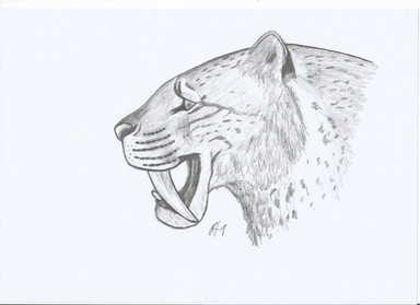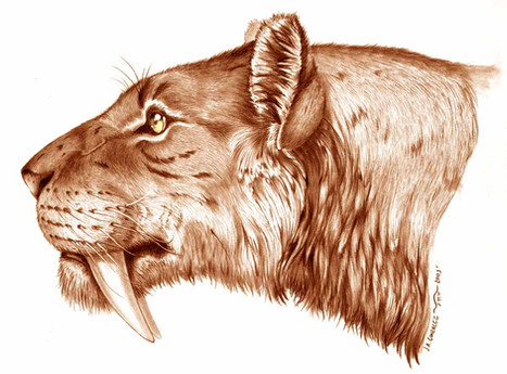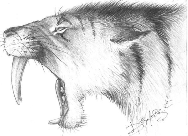 when I was 14, I tried drawing a smilodon on top of a picture of the skull in one of my school library books... I've been meaning to try it again... This is great, and what tickles me, is I can see something that comes through that attempt and this (successful) drawing of a smilodon. It's just awesome to feel that we have a way to picture what this amazing feline really looked like!