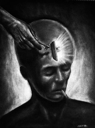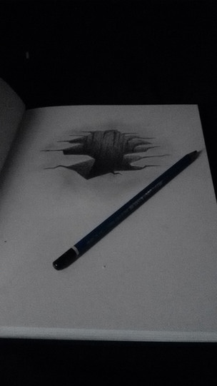 A person from the art world who is trying to get out and escape.Equipment: Pencils (4B, 5B. 7B, 8B), kneaded eraser.