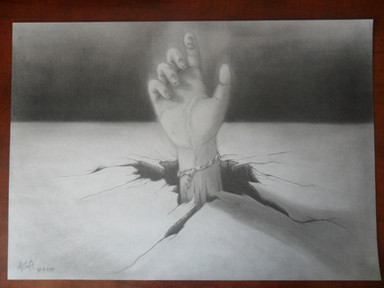 This is fantastic! When I saw the thumbnail, I thought it was a photograph. I really like the emotions conveyed by just a hand (: