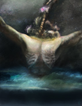 My first impression is that this is a piece that shows that eternity is a being and what we perceive as reality is but a reflection cast in him, however I feel I'm not "getting" this one at first and I might have a new impression in a few days. But one way or another this is some damn fine work!