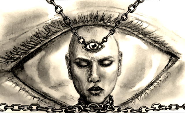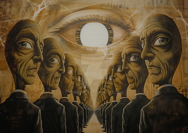 wow this is fantastic! funny I had a dream like this recently, seems a coincidence I saw such a picture XD that eye is really piercing and I like how both the eye and one brainwashed person at the bottom stares at the viewer D: