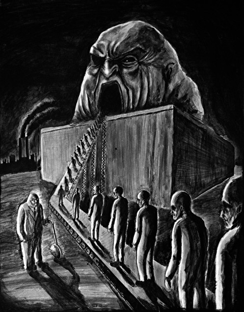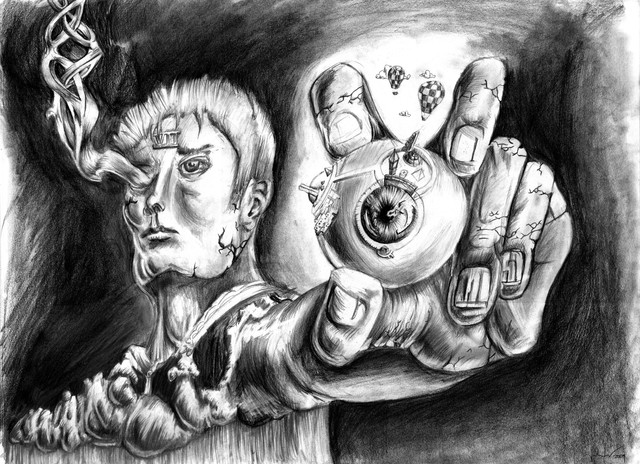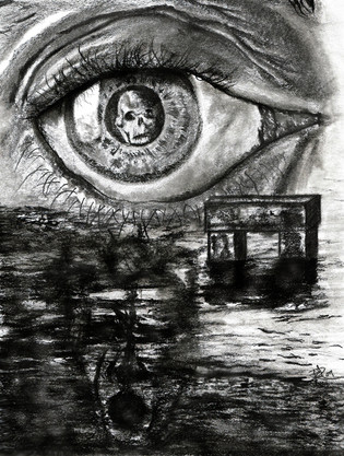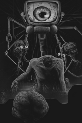 The stacked up televisions are brainwashing the unthinking people and then making them mindless. Literally. The eyelashes are reaching for the people minds.Equipment: Pencils (4B, 6B, 7B, 8B) charocoal, kneades eraser and some tissues.
