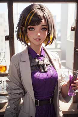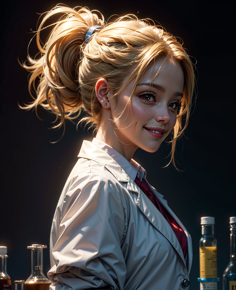#ai #alchemist #beautifulgirl #blondehair #hairbun #labcoat #scientist #study