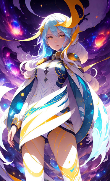 #ai #anime #animegirl #beautifulgirl #cosmos #digitalart #digitalartwork #digitalillustration #estella #female #girl #magiciangirl #stars #yelloweyes #animecore #artworkdigital #magician_outfit #artificialintelligenceart #stablediffusion