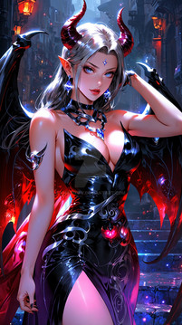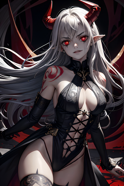 #ai #beautifulgirl #demongirl #dragon #horns #snake #whitehair #fire #midriff