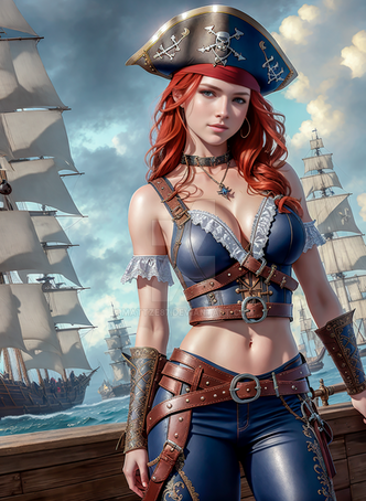 #ai #beautifulgirl #parrot #pirategirl #redhead