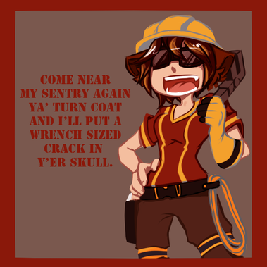 What's this I hear you ask? You disappear for months on end with no hint of activity, and when you finally return, I get...this?! A TF2 spray for f***'s sake? Christ, Secret Agent, you lazy bastard, put your priorities straight.In my defence I have Uni and should be studying now, and I've had RAM problems with Photoshop that have caused me to lose a lot of work, but yeah. I am lazy. 0_0