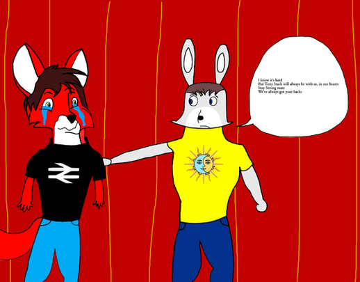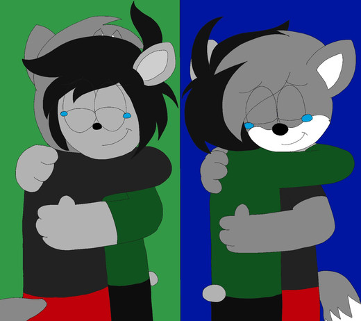 He's been feeling down lately, so I thought I'd make something to help cheer him up a little. It's my character, Ryan, hugging his character, Sarey / Sarevol. If someone is feeling down, Ryan is always willing to give them a hug to cheer them up.