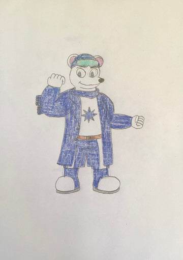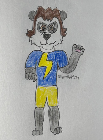 An updated version of my original character, Oscar.The original drawing also had him flying in the air and striking a pose. As cool as it was, the expression I gave him didn't look like it fit for his personality, so I redrew him in a different pose with a different expression.