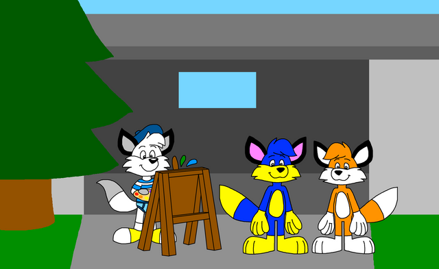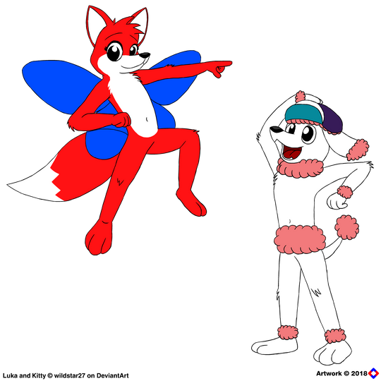 A birthday gift for .Here we have his characters, Kitty and Luka. Kitty is posing for Luka's painting, but as he knows, Luka isn't the best at painting inside the lines. ...And by the "lines," I mean the "canvas."
