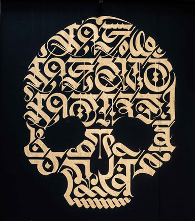 A Hindi phrase, which means... a home of peace.Indian Ink