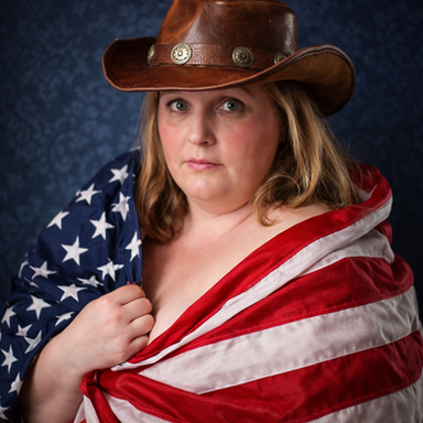 great shot... love the smile ,the flags ,the shirt... god bless the USA