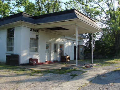 Such a tiny building! I love this: it's as if nature is taking back what little land the gas station is inhabiting.