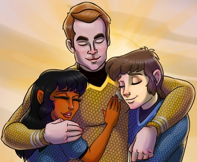 In this verse Kirk left the Enterprise after only a few months and accepted command of the science vessel, Saratoga. While there Kirk meets Alyen and his lifemate Shylea L'Naym. The three immediately form a strong bond and months later the lifemates form a Soul Sibling bond with Kirk; basically adopting him as their older brother and becoming his younger brother and sister. Theirs is a very unique friendship; a Starship captain and two enlisted crewmen. But Kirk's always been destined to be unique.