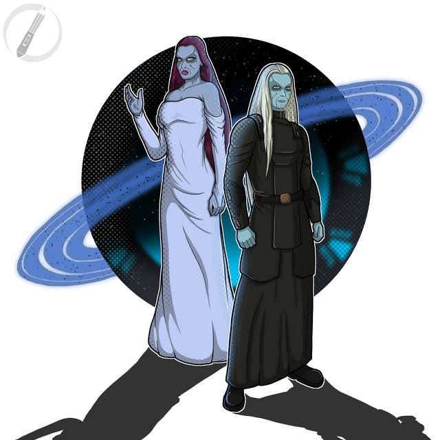 This Is Beautiful!!! I love wolfanita artwork of the Tkarites Merchant Couple; Tkarites are truly a beautiful species and in many ways remind me of elves.