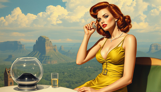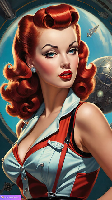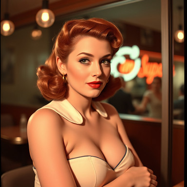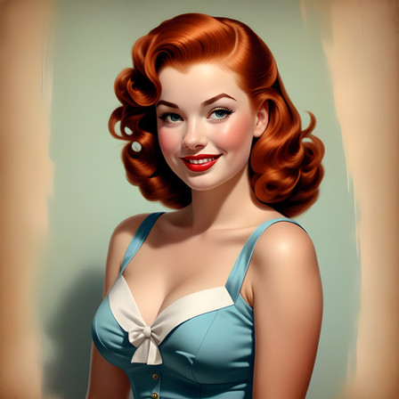 #1950s #beautiful #conceptart #connection #digitalart #era #fantasy #girl #heat #human #lovely #magic #memory #nostalgia #past #portrait #redhead #retro #soul #style #thougtful #time #aiart #old #aiartcommunity