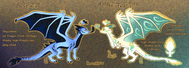 Frishas mother, Serinus, was a dragoness with a bounty on her by the Ape clan because of her affiliation with the dragon soldier Frillisean. Her mate, Mullison, still fell for her and accepted living in hiding if it meant staying with her. They constructed a secret hideout as their home and soon Serinus would lay three eggs, their children.