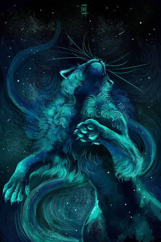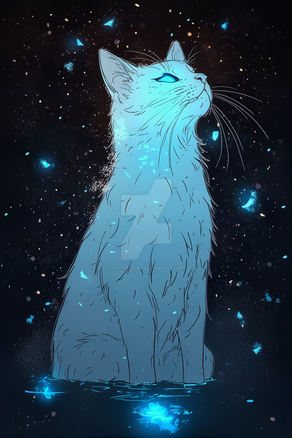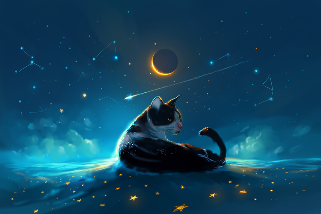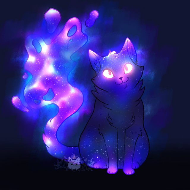 #animal #cat #cosmos #fantasy #feline #fluffy #funny #galaxy #magic #moon #space #stars #universe #watercolor #fantasycreature