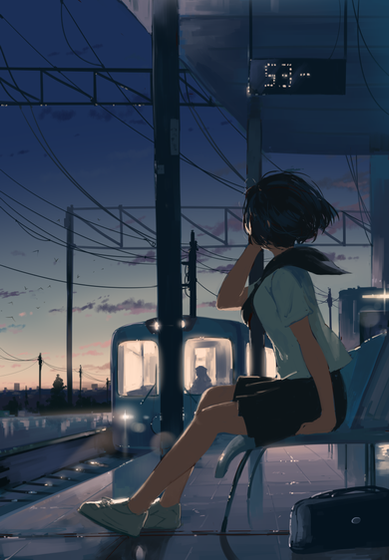 #aesthetic #anime #bus #calm #chill #city #cityscape #girl #lofi #peaceful #relaxing #skyline #station #train #wallpaper