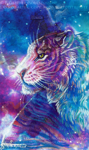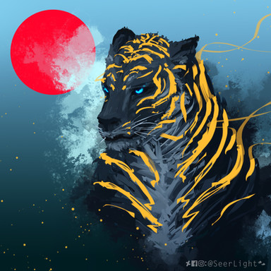Just.. wow. This looks utterly wonderful! I'm a fan of tigers; that, and this particular style of painting where everything just looks a tad bit like paint smudged and lovingly spread on paper canvas. It's the texture, really, and I just adore it! The color combinations make every detail pop, too! This is absolutely beautiful.