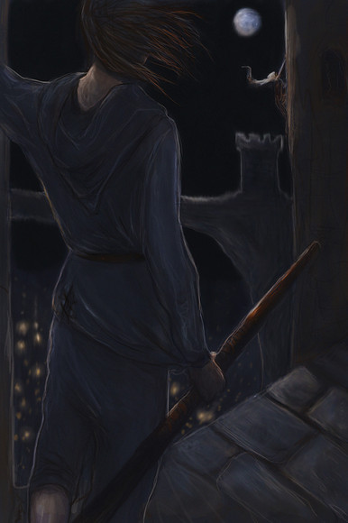 I love the bricks and the hair and the shading and the line/glowy balefire and the perspective and... (pretty much the whole thing).