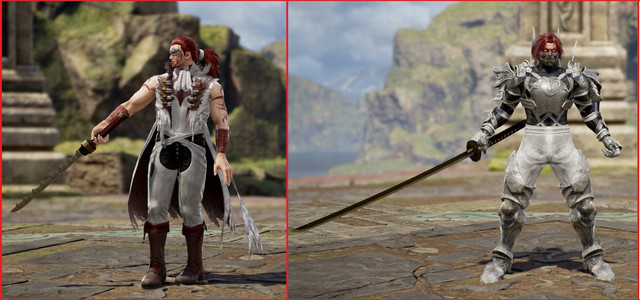 El traje de Raphael de Soul Calibur IV para Creación. Versiones masculina y femenina.