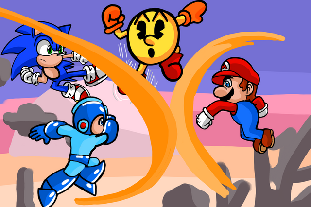 #videogamefanart #sonicthehedgehog #mario #digitalart #fanart #nintendo #namco #pacman #parody #cartoonartwork #pacmanfanart #cartoonslapstick #doggyandfriends #crossoverfanart #parodyfanart