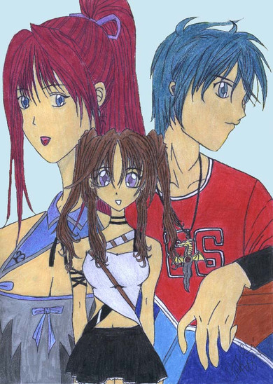just some another Groove adventure Rave pic ^_^ Featuring Haru, Plue and Elie (no dont ask *what* Plue isIts scanned in three pieces so thats why it doesnt look quite right in some parts... ¬_¬