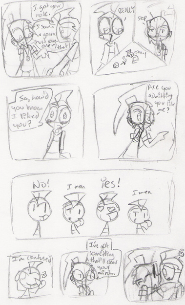 Aw jeez, another comic. After the Zim and Raz one, I just had to make a Dib and Raz. Lili's there too, but I don't want to title this 'Dib and Raz and Lili'. That would be too lengthy and not very catchy and even less imaginative.Poooor Dib.