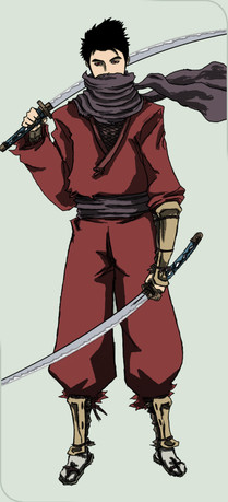 An Elvaan Samurai from FFXI, rockin' hachiman gear and wyvern helm. I've always wanted to draw those..so I finally did it.Scanned and then colored via PSCS.
