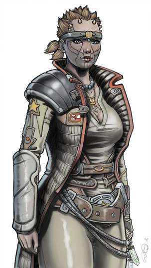 Damn fine bit of work there, bud. Only thing coming off as incongruous for me are the dark lines on the left side of the nose there? They seem a bit heavy-handed for a surface change with no edge. I particularly like the rhythm of detail/graphic simplicity. Kudos!