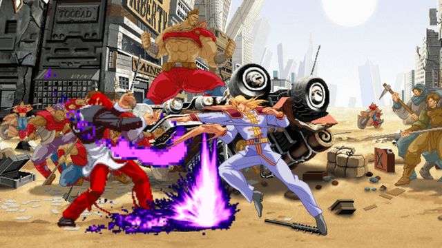 LOL the description is kind of a spoiler to SBR in my opinion since Gyro rarely goes by that name, but this is freaking a GREAT sprite! Two of my favorite JoJo characters going at in the race! I assume this is partially based off the Part 3 game's Dio and Hol Horse sprites?