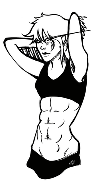 Painting study I did to practice rendering abs. It was in colour until I finished rendering the abs and realized it was a muddy mess (and since it's a practice thing I didn't want to redo it). Just made a mess of the values so the colour looked bad; lesson learned is that for something like abs I need to zoom in closer and use smaller brushes for rendering because it should be a lot of value changes over a relatively small area. Will have to try again soon.Related content