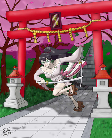 #characterdesign #originalcharacter #animegirl #digitalart #ninja #fanart #anime #kimono #kunoichi #shrine #spearwoman #temple #warrior #darkskinnedgirl