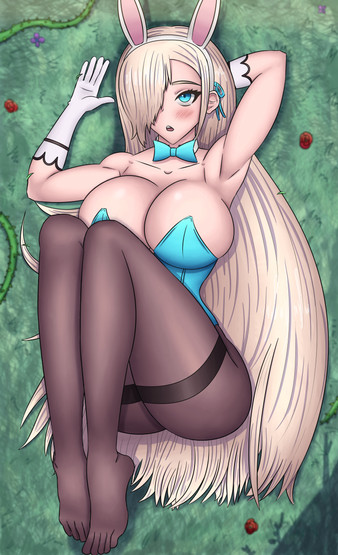 #abs #digitalart #bigbreasts #blondehair #bunnygirl #bunnysuit #animemangagirl #thickthighs #six_pack_abs #blue_archive #asuna_blue_archive