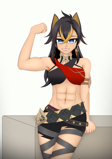 #abs #digitalart #videogamefanart #animemangagirl #muscularfemale #six_pack_abs #genshinimpact #genshin_impact #monagenshinimpact #mona_genshin_impact
