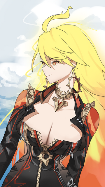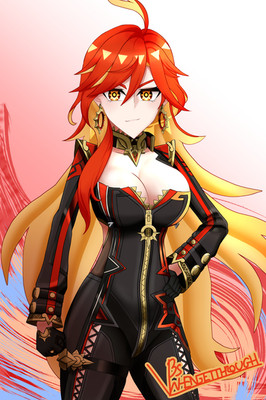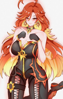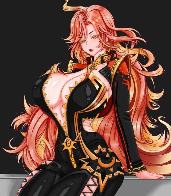 #anime #fanart #videogamefanart #redhair #digitalart #archon #bigbreasts #bikergirl #genshin_impact #genshinimpactfanart #mavuika #mavuika_genshin_impact