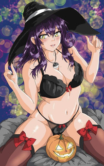 #digitalart #bigbreasts #garden #illustration #originalcharacter #purplehair #sorceress #animemangagirl