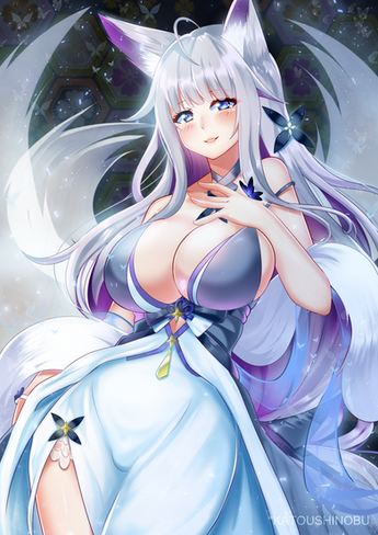 #digitalart #shinano #bigbreasts #foxgirl #japaneseclothes #kitsune #kitsunegirl #animemangagirl #whitehairgirl #azur_lane #azurlanefanart